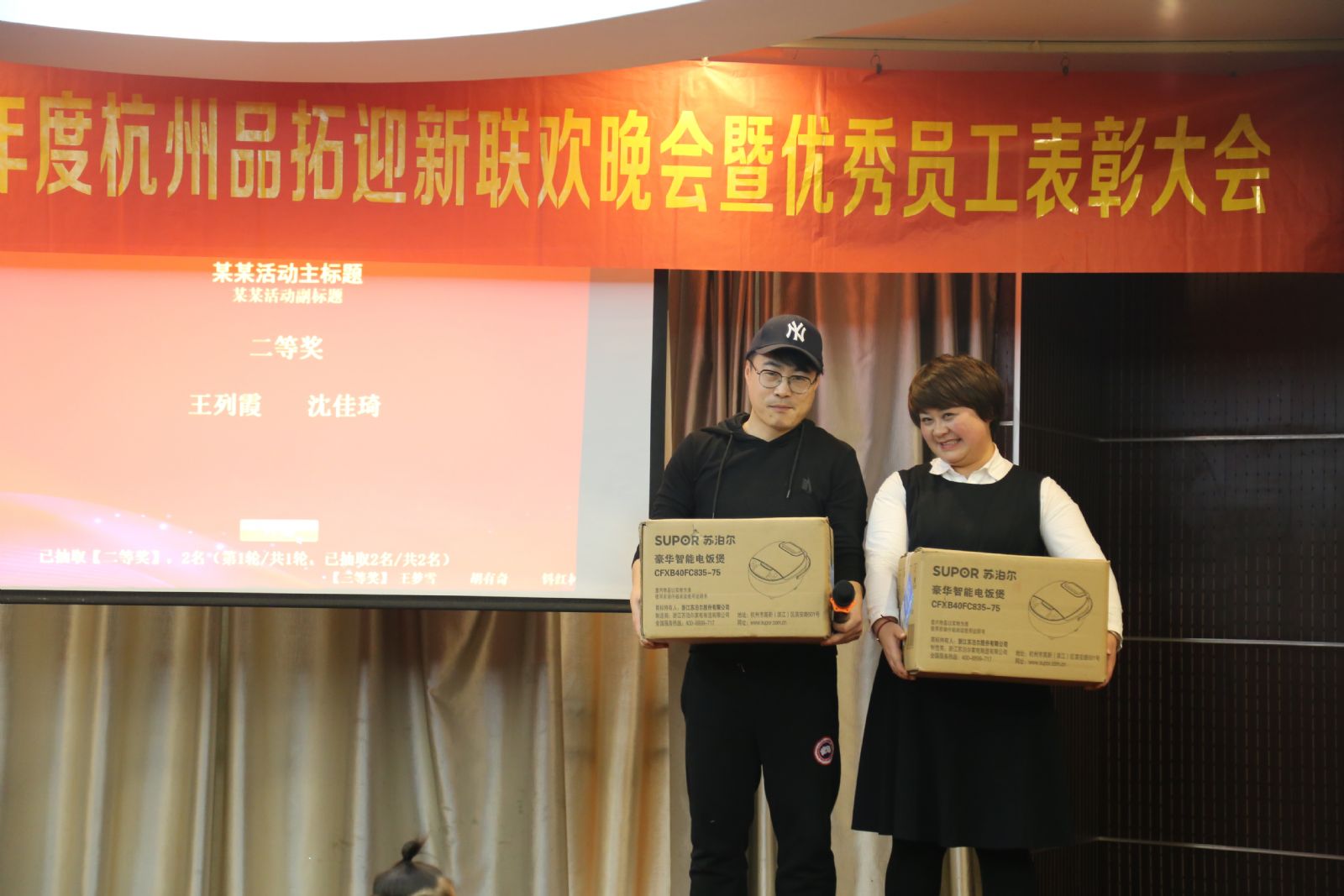 在品拓,有一对情侣即将跨入婚姻的殿堂,成为一家人,相濡以沫,携手共进,在年会当天改了节目单,合唱张宇的《给你们》送给这对新人,有祝福,有期盼,因为是一家人。高潮过后又是一波高潮,一等奖与特等奖的抽奖环节,总共三块手表,2018年会更旺吧!